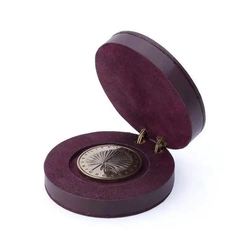 Hatıra paralar için Logo kabartma ile özel yuvarlak sikke hediye kutusu kırmızı kahverengi PU deri ambalaj